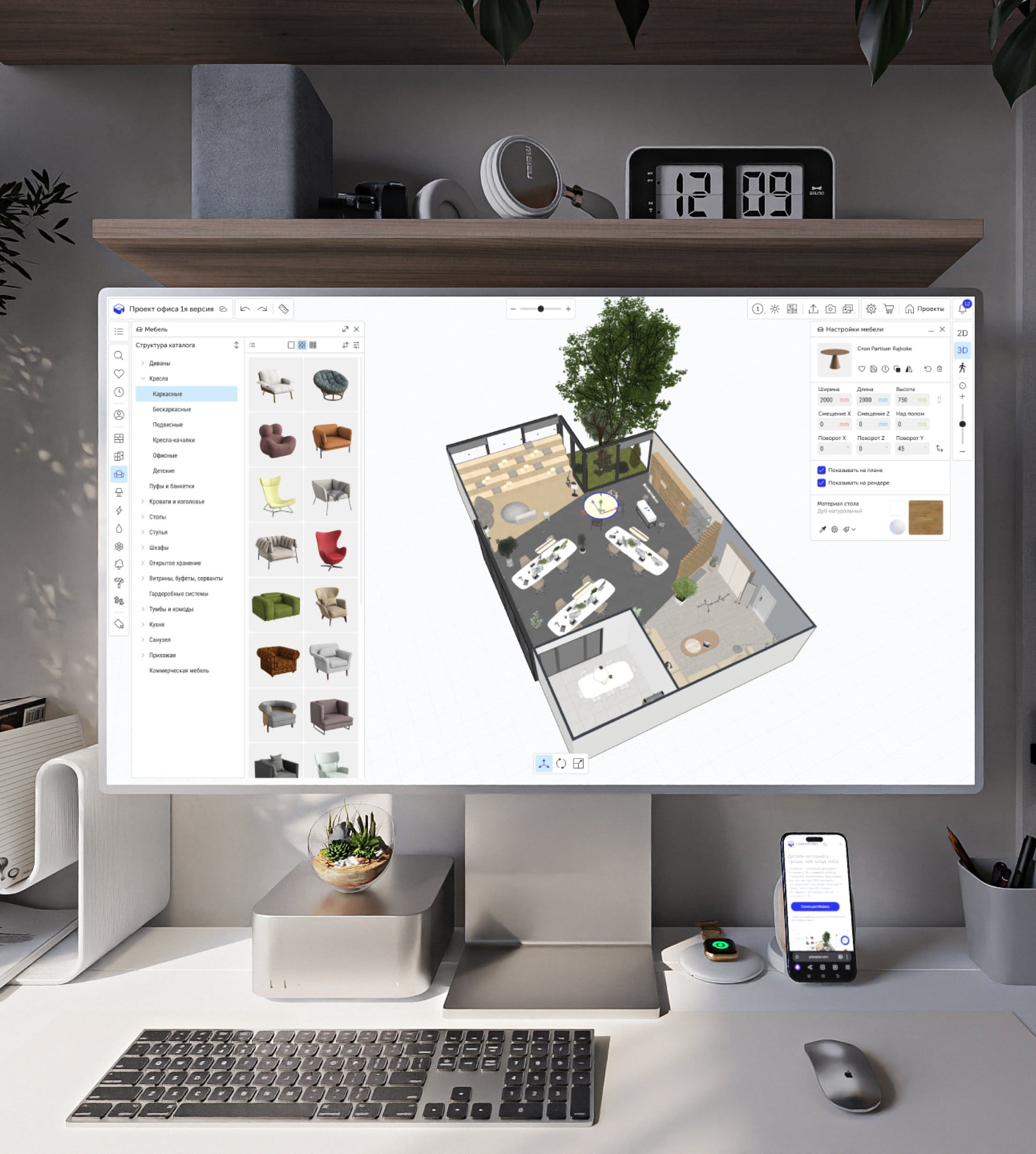 Библиотека готовых 3D‑моделей мебели и материалов преимущественно отечественного производства. Простая загрузка своего наработанного каталога в проект